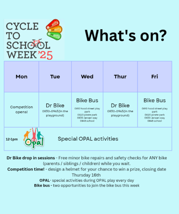 CYCLE (AND SCOOT!) TO SCHOOL WEEK - MONDAY 13TH - FRIDAY 17TH OCTOBER 2025